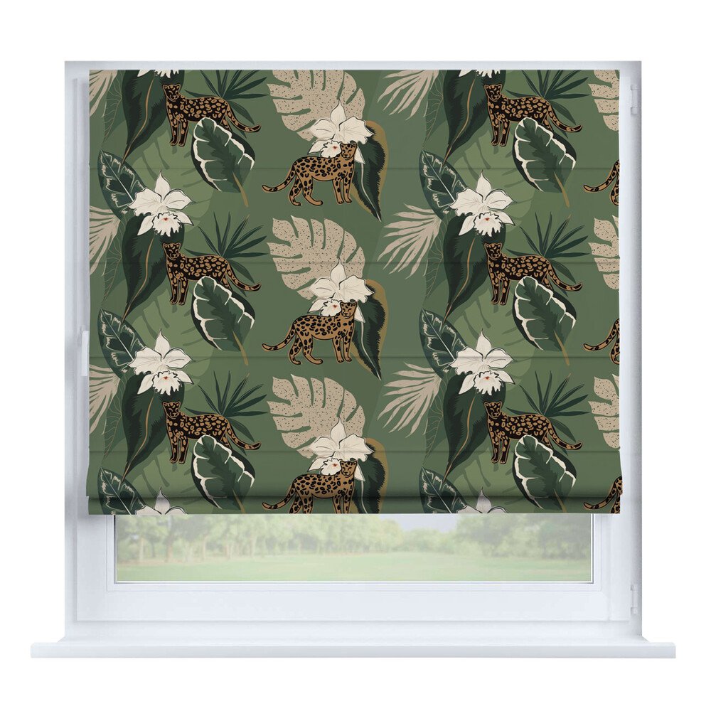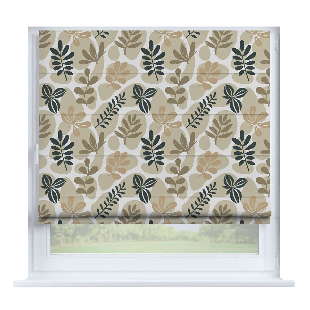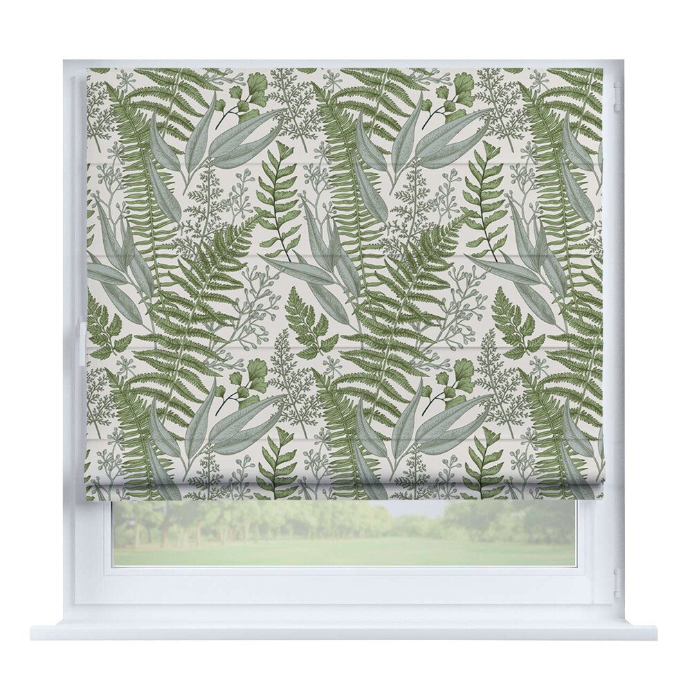 Римская штора для проёма лён димаут тёмно-зелёный, карниз верёвочный