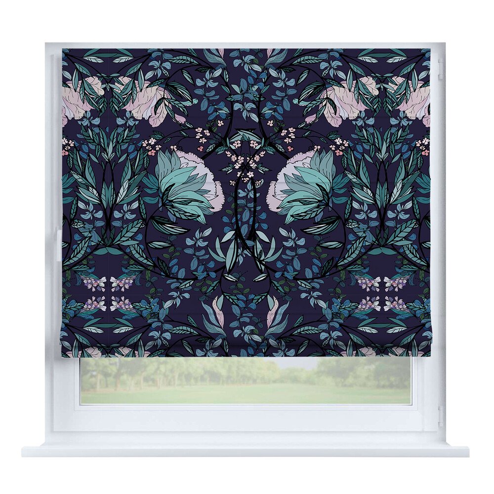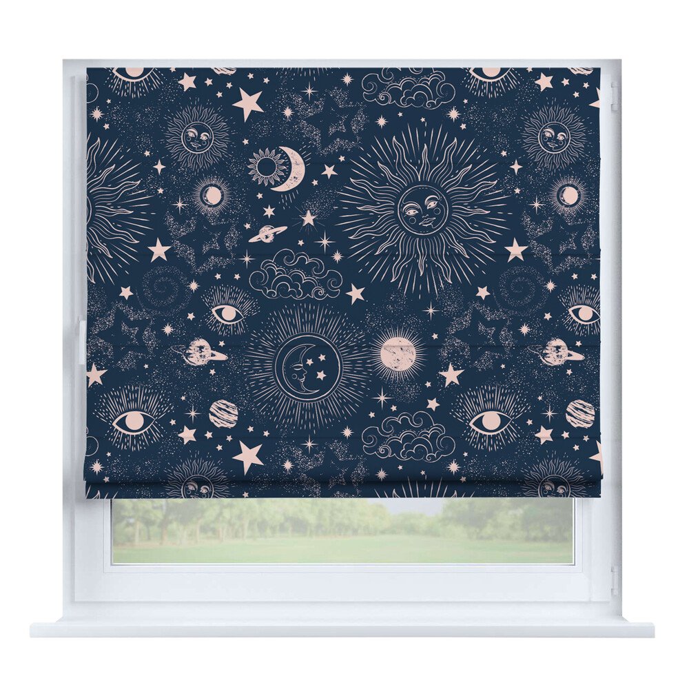 Римская штора для проёма «Ночные облака», карниз верёвочный