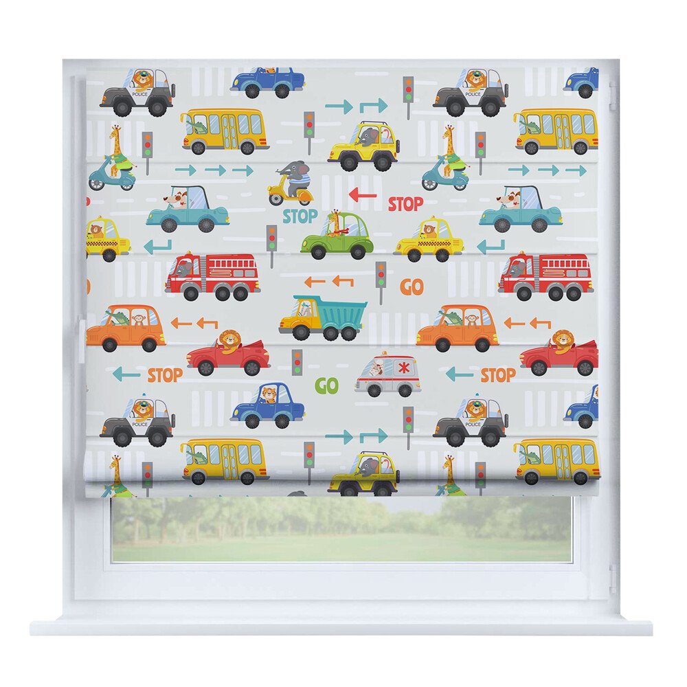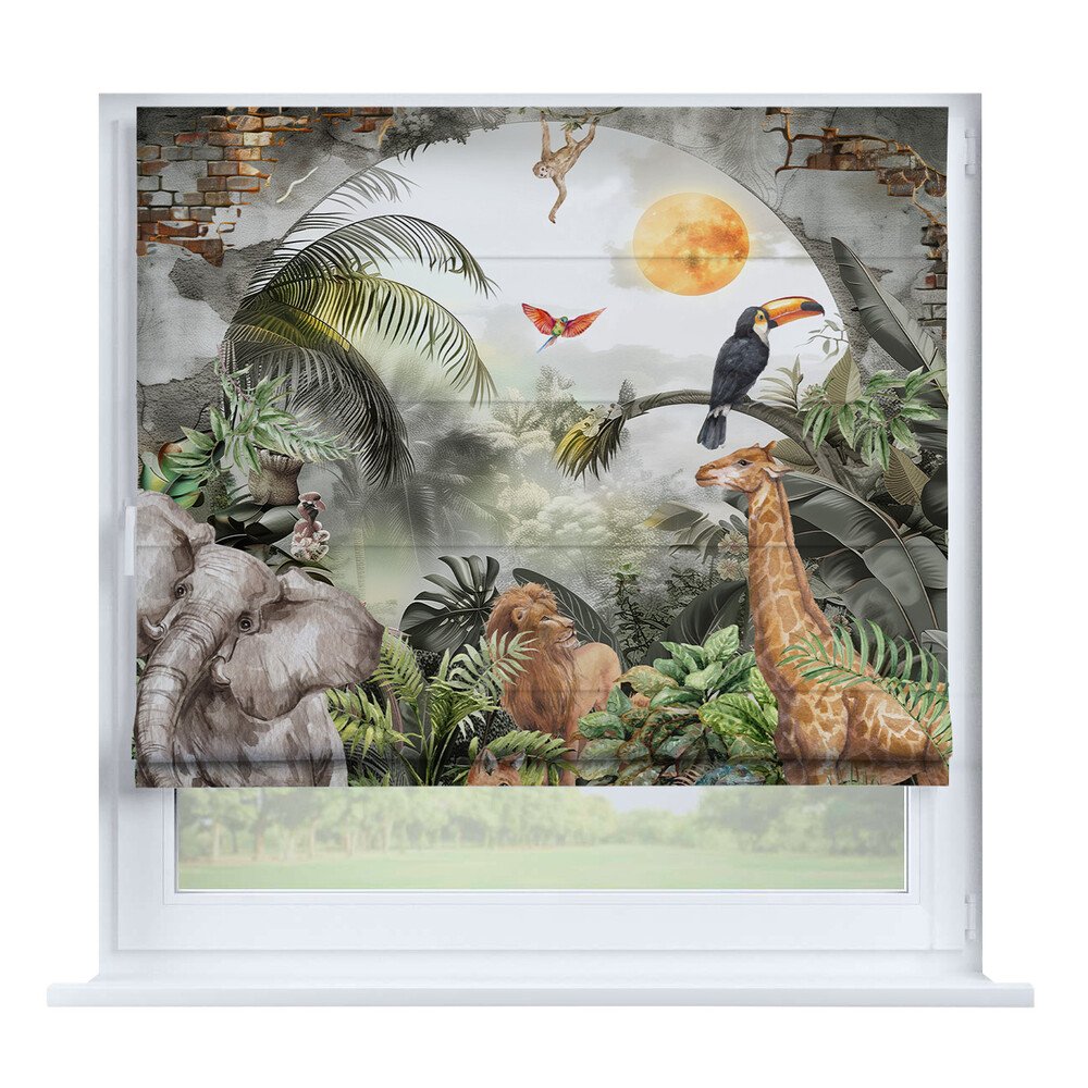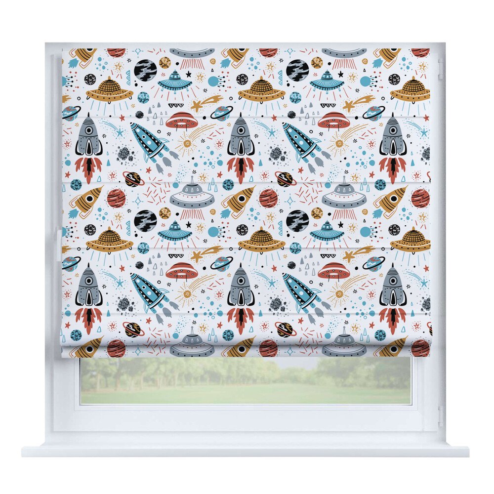 Римская штора для проёма «Скандинавский питомник», карниз верёвочный