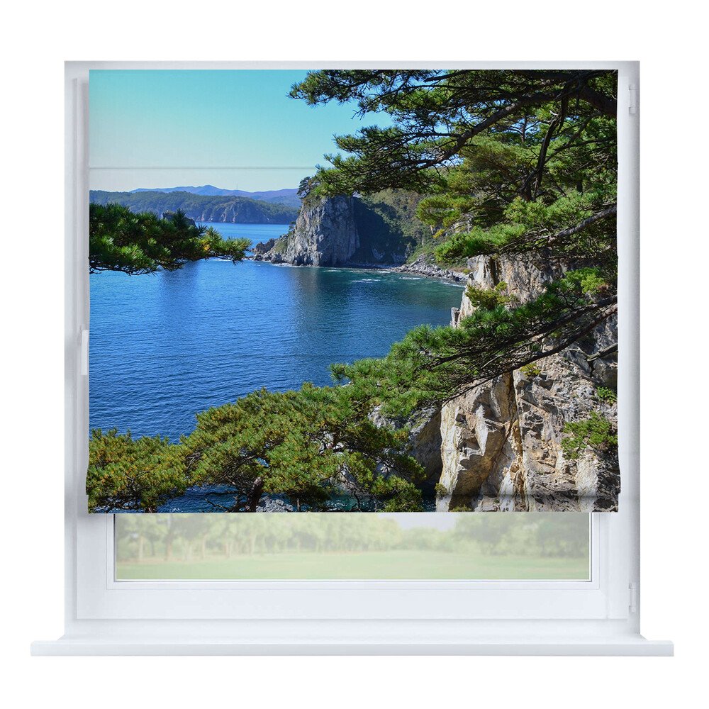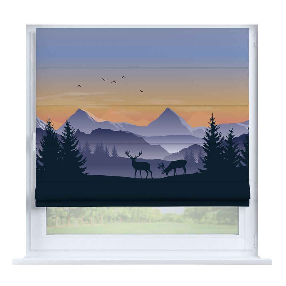 Римская штора для проёма «Лесистая местность», карниз верёвочный