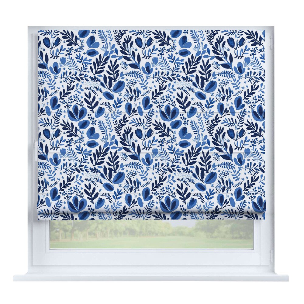 Римская штора на створку ткань вельвет васильковый, карниз верёвочный